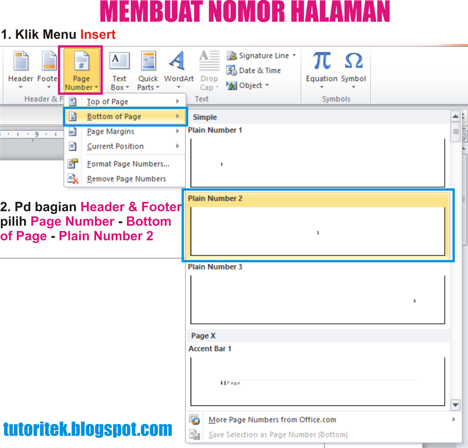 Sebenarnya caranya sama hanya saja peletakan menu pada microsoft word versi 2007.