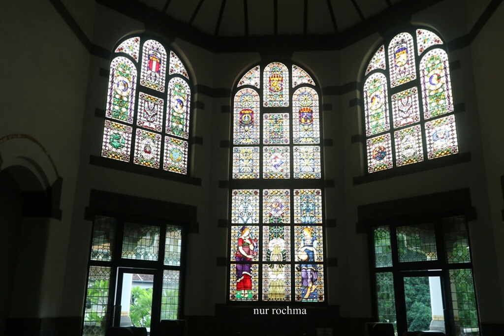 Daya tarik utama gedung utama yang bisa dilihat dari dekat oleh wisatawan adalah kaca patri karya seniman asal belanda, j.l.