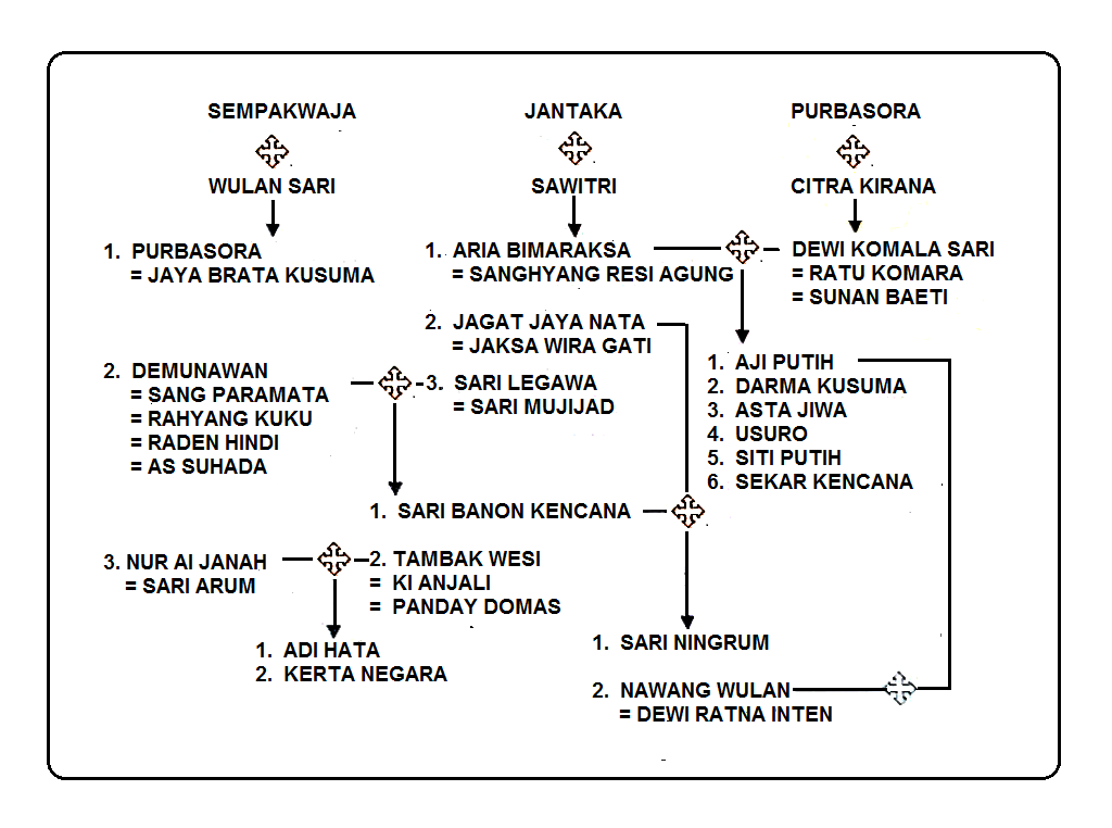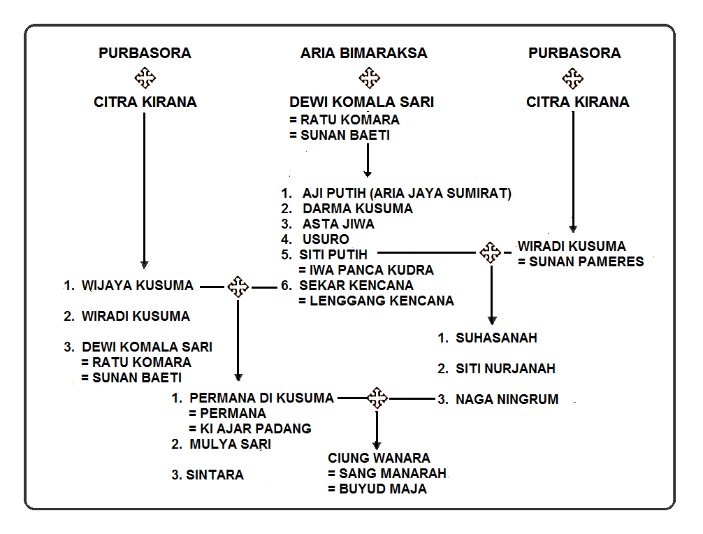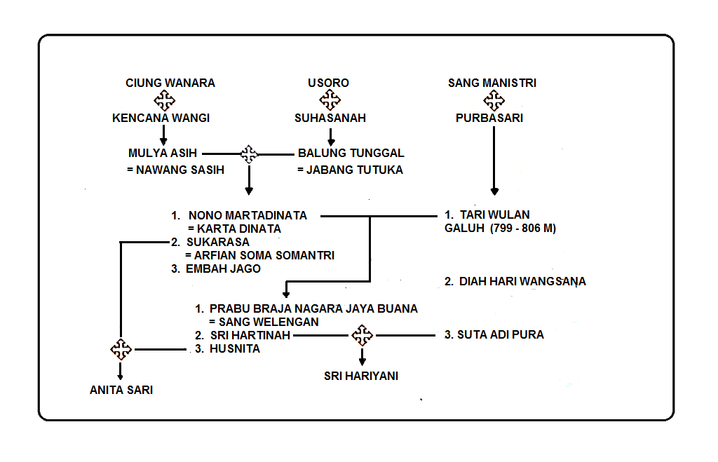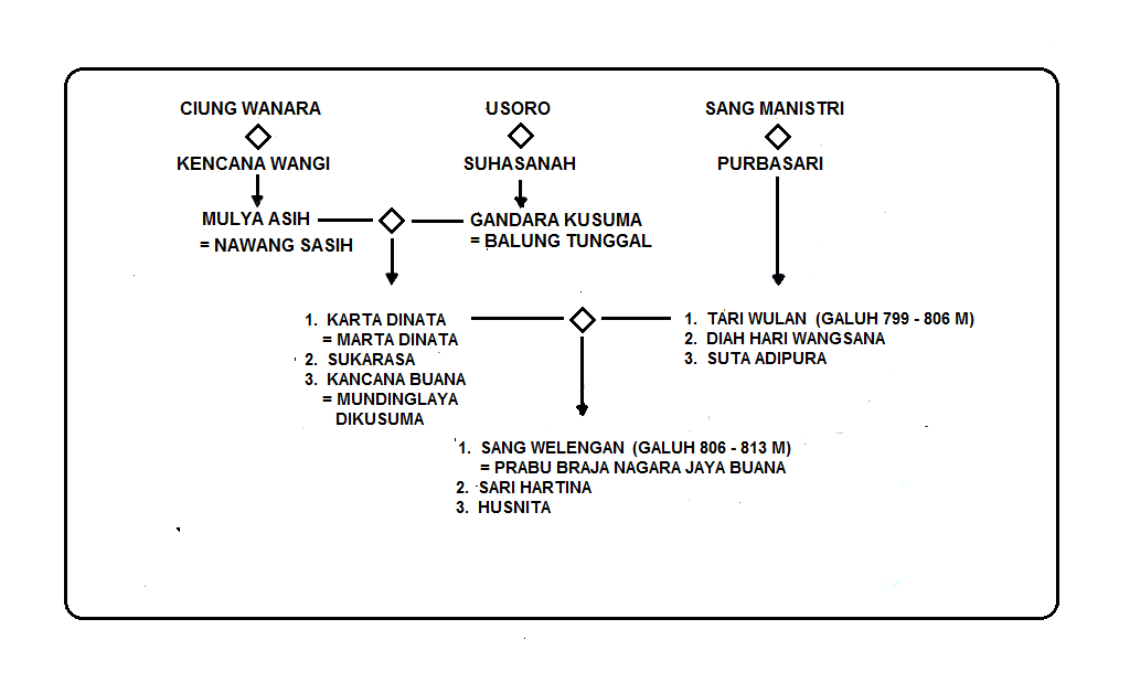 Silsilah Prabu Sangga Buana Meninjau kembali, silsilah kyai ahmad dahlan (muhammadiyah) ? Dari perkawinan itu lahirlah syeh siti jenar. Mangkubumi suradipati atau prabu bunisora, adik prabu lingga buana. Saya melihat prabu pandu dewanata dalam silsilah itu hanya punya satu istri yaitu dewi kunthi, yang saya tau itu prabu pandhu dewanata punya dua istri yaitu kunthi dan madrim dan mempunyai lima putra yang disebut pandhawa lima. kisah prabu siliwangi sangat dikenal dalam sejarah sunda sebagai raja pajajaran. Prabu atas angin memiliki garwa ibu ratu bungsu dari keturunan ki buyut sawala.