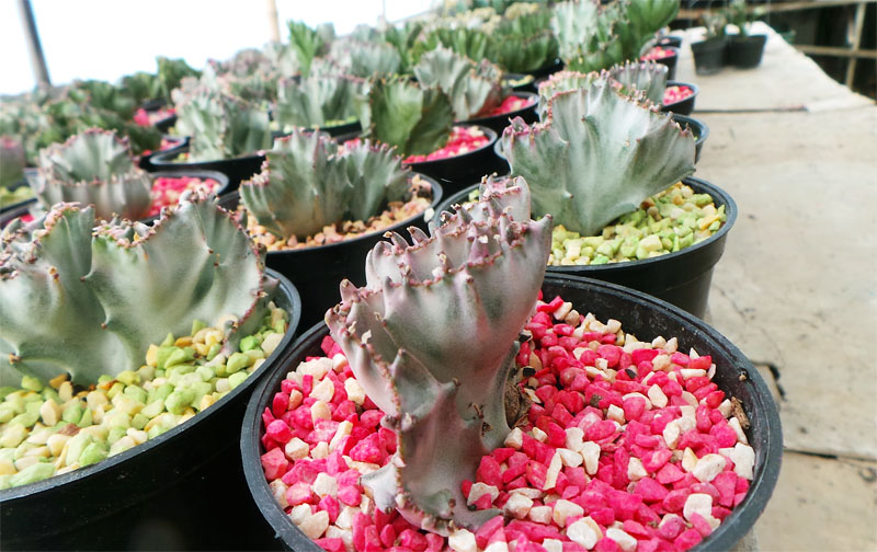 Paket souvenir tanaman dengan kemasan mika ekslusif terlihat anggun dengan taburan aksesoris batu zeolit warna diatas media tanam ditambah stiker tips perawatan dan ucapan terimakasih.