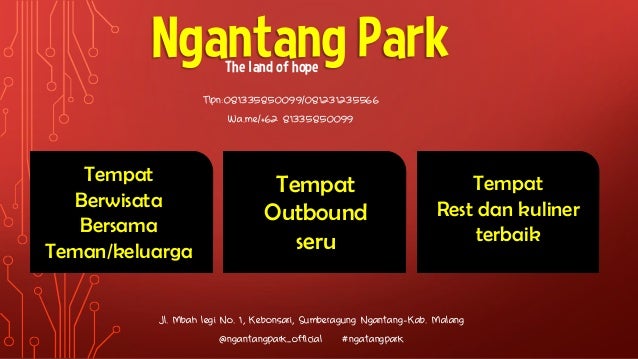 Dan kali ini kmai hadir untuk melengkapi hasrat anda berkunjung ke tidak hanya itu saja, taman ini juga menyediakan paket outbound alam yang sangat bervariasi.